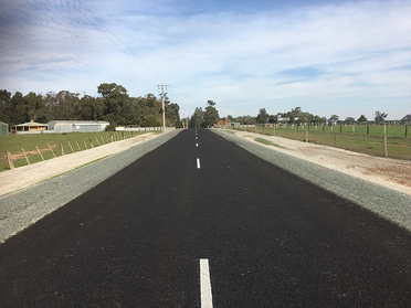 Widening and rehabilitation of existing 1.5km road pavement including the installation of a TL4 road barrier and end terminals, lime and cement subgrade stabilisation, 4 no. driveway crossings, 3 no. box culvert road crossings, 14/7 spray seal, line marking.