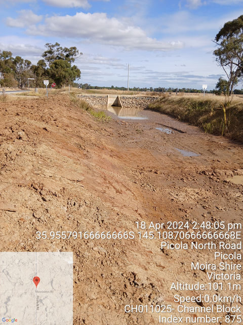 Installation of 965m GMW pipeline, Rationalisation of 1 meter, Installation of a new road crossing to accommodate the GMW pipeline, Decommissioning of 1 road crossing, Decommissioning of 1 knife edge weir, Installation of channel block and backfill of associated channel nib.